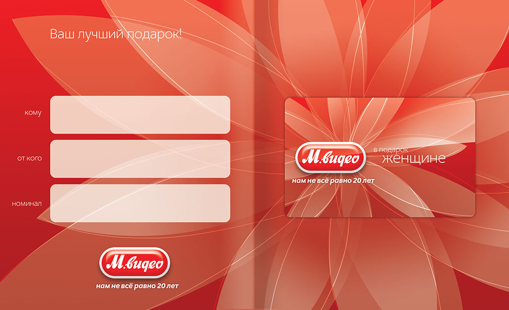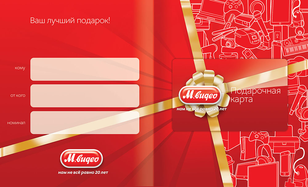 Компания «М.Видео» предлагает Участникам Конкурса разработать концепцию визуального оформления линейки подарочных карт, которые будут использоваться в магазинах торговой сети «М.Видео». Участникам нужно разработать решение, которое будет применимо к разным поводам для подарков и демонстрировать преемственность дизайну и ценностям бренда «М.Видео». Необходимо представить дизайн для семи разных подарочных карт, соответствующих следующим темам:
