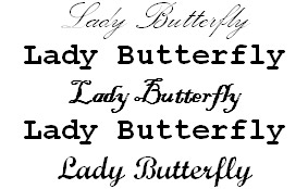 Точно могу сказать, что этикетка должна быть белая, на ней изображена бабочка, либо девушка с крыльями бабочки, стоящая или сидящая боком. Крылья бабочки, должны быть окрашены насыщенным цветом, соответствующим цвету товарной группы. Надпись должна быть выполнена изящным рукописным шрифтом и расположена на этикетке под наклоном снизу вверх. Попробую изобразить хотя бы приблизительно из компонентов найденных в программе Word и Интернете, свою задумку. Итак, ниже изображена этикетка для шампуня (только “фея” должна быть сиреневая, т.е. соответствовать цвету своего сегмента):