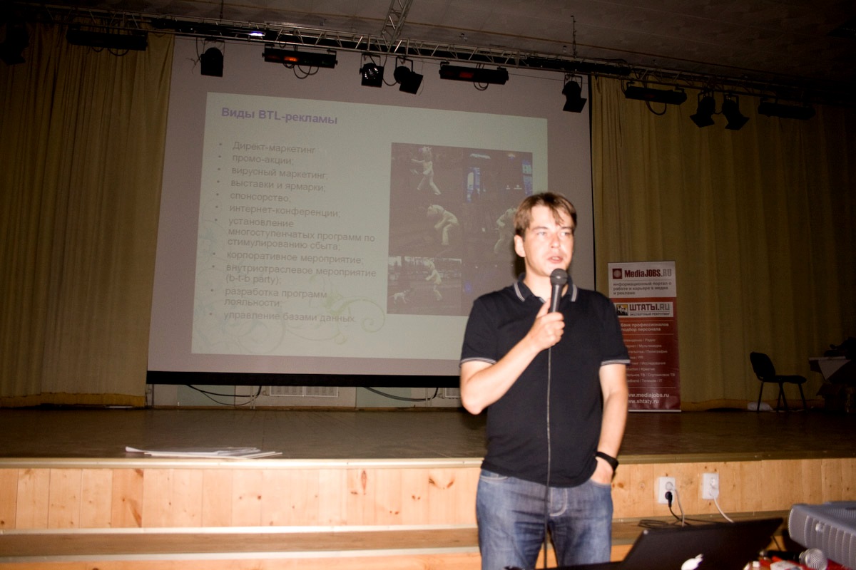 «Заразный» креатив. Кампус ADCR продолжаетсяЧетверг, последний день семинаров, собрал на кампусе знатоков Интернет-рекламы. Утром сонных участников встретил генеральный директор медиа агентства Adwatch Андрей Чернышев и рассказал о креативе в виртуальном пространстве. «Чтобы был хороший креатив в Интернете, надо хорошо понимать это медиа», - отметил он, а для этого надо знать возможности рекламных площадок. Андрей Чернышев рассказывает об особенностях Интернета как медиа Затем перед ребятами появились мастера рекламных коммуникаций из агентства вирусного маркетинга «Аффект» креативный директор Илья Корнеев и руководитель агентства Дмитрий Козлов. Вирус - один из самых перспективных видов продвижения, где идея должна быть такой яркой и «бьющей», что люди сами распространяют вашу рекламу. Однако создать сообщение с такой силой энергии не по силам и многим рекламистам со стажем. По словам гостей из «Аффекта», успех в вирусном маркетинге складывается не только из возможности креативить, но и опыта в данной сфере, они, к примеру, четыре года изучали вирусы. «Здесь даже не нужно много таланта, это должно просто нравиться, тогда ты перелопачиваешь тонны информации и становишься профессионалом», - добавили они. Кроме того, создатели одного из самых успешных вирусных видео для фильма «Особо опасен» показали примеры удачной и не очень вирусной рекламы, которые были основаны на схожих идеях, но по-разному поданы. Поэтому главное при создании вируса - найти правильное настроение, адекватное аудитории рекламы. Илья Корнеев и Дмитрий Козлов учат, как правильно создать медиавирус Корреспондент Sostav.ru задал основателям агентства «Аффект» несколько вопросов: -Почему так сложно создать вирус? Илья Корнеев: Чтобы человек научился делать классные истории, должна быть проделана большая работа. Кроме того, это новая вещь для России и не так много творческих людей начали этим заниматься. Дмитрий Козлов: Тот, кто делает ролики для телевиденья, очень развращены этим медиа. Оно не оставляет зрителям выбора и вещает вне зависимости от качества контента. Можно показывать посредственность, можно шедевры, но результат примерно одинаковый. И поэтому они привыкли штамповать ширпотребную продукцию. А как только у зрителя появляется выбор, он выбирает то, что его действительно цепляет. Более того, в вирусах нужно соединить сумасшедший креативный талант и знания виртуальной сети. Хорошая идея может остаться неизвестной, если не знать, как в Интернете распространяется информация. -Посоветуйте участникам кампуса, как подойти к теме донорства в вирусе? Илья Корнеев: Это должно быть что-то искреннее, настоящее, призывающее к чему-то очень хорошему. Дмитрий Козлов: Тема, действительно, должна быть искренней и честной. Такой вирус нельзя строить на юморе, стебе, жестокости или игре слов. Илья Корнеев: Когда мы с Димой ехали сюда, то обсуждали историю с Чумазиком. Весь Интернет собирал ему деньги, выяснив, что он сумасшедший. Это искренние истории, и люди умеют им сочувствовать. Какой бы холодный и стебный не был Интернет, все подключаются, когда дело идет о чем-то настоящем, живом и добром. Креативный директор агентства вирусного маркетинга «Аффект» Илья Корнеев и руководитель агентства Дмитрий Козлов Пообедав и вдохновившись образцами вирусного креатива, учас