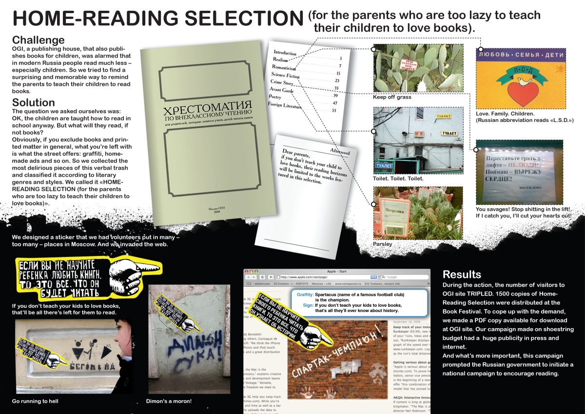 Номинация КРЕАТИВНЫЕ МЕДИА-РЕШЕНИЯ Подноминация Реклама с использованием нерекламных носителей Название работы GET INTO THE FREEDOM Агентство/Исполнитель GLOBAL Point Клиент JTI Бренд Winston Креативный директор Али Мамедов Арт-директор Анастасия Циханович Копирайтер Анастасия Царевская Дизайнер Роман Тихонов Продакшен Екатерина Лизогубова Номинация КРЕАТИВНЫЕ МЕДИА-РЕШЕНИЯ Подноминация Реклама с использованием нерекламных носителей Название работы Утро бухгалтера начинается с Паулиг Агентство/Исполнитель Optimum Media OMD Group Клиент Паулиг Бренд Кофе Паулиг Номинация КРЕАТИВНЫЕ МЕДИА-РЕШЕНИЯ Подноминация Реклама с использованием нерекламных носителей Агентство: Leo Burnett Moscow Название работы: Win the Window Клиент: Leo Burnett Moscow Бренд: Leo Burnett Moscow Креативный директор: Илья Оленев Арт-директор: Светлана Гущина Копирайтер: Елена Куховар Номинация КРЕАТИВНЫЕ МЕДИА-РЕШЕНИЯ Агентство: Leo Burnett Название работы: Хрестоматия по внеклассному чтению Клиент: Издательство ОГИ Бренд: Издательство ОГИ Креативный директор: Михаил Кудашкин Арт-директор: Александра Щербович Копирайтер: Полина Богатырева-Магуайр, Виктор Ландер Номинация КРЕАТИВНЫЕ МЕДИА-РЕШЕНИЯ Название работы: Вы никогда не видели таких актеров Агентство: Leo Burnett Moscow Клиент: Протеатр Бренд: Протеатр Креативный директор: Михаил Кудашкин Арт-директор/Копирайтер: Наталья Павлова, Ольга Прохватилова, Вера Карпова, Арина Авдеева