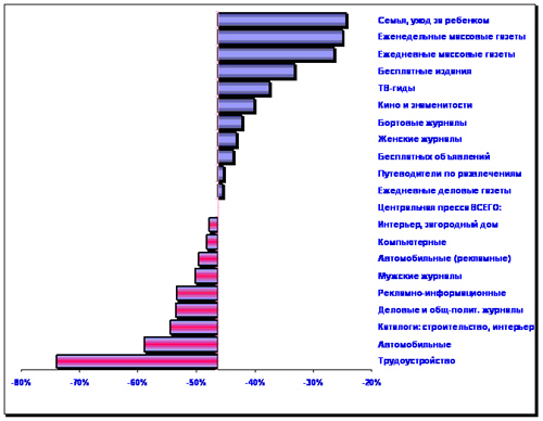 Честно говоря, перед взглядом на итоговую строку каждого нового месяца пульс заметно учащается. Данные за май вызвали вздох облегчения. Нет, не то, чтобы все стало хорошо, и кризис миновал, просто не стало хуже. И даже появилась небольшая надежда, что "дно" в марте-апреле наконец-то было достигнуто, хотя авторитетные эксперты рынка прогнозируют дальнейшее снижение объемов рекламы в прессе. Что же, рекламный рынок живет не сам по себе, он подвержен прямому влиянию общей экономической ситуации, а пока ни о каких переменах в экономике, внушающих оптимизм, не слышно.