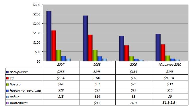 Динамика развития медиарекламного рынка Казахстана в 2007-2009, прогноз на 2010 г.