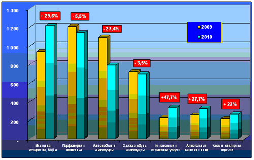 Добавляет оптимизма также взгляд на апрельскую динамику бюджетов товарных категорий. Большинство важнейших для прессы категорий (за исключением автомобилей и алкоголя) в апреле продемонстрировало прирост по отношению к этому же месяцу 2009 года. Особенно важно, что прекратилось сокращение бюджетов парфюмерии и косметики, одежды и обуви. Это позволило женским журналам и журналам сегмента celebrity (о кино и знаменитостях) также показать в апреле небольшой прирост доходов (+ 4,4% и 6,4% соответственно). Мужские же журналы пока остаются в минусе, что во многом объясняется продолжающимся сокращением бюджетов автопроизводителей и их дилеров. Этот фактор также не позволяет выйти в плюс различным автомобильным изданиям и деловым журналам, несмотря на резкий рост бюджетов по категории "Финансовые и страховые услуги".