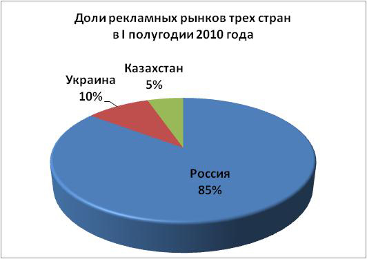 Рекламные рынки трех страны России, Украины и Казахстана прошли через кризис. Правда, если в России и в Украине уже начался процесс восстановления - рекламные инвестиции в первом полугодии 2010, по сравнению с аналогичным периодом 2009 года, увеличились на 10% и 27%, соответственно - то в Казахстане по прежнему наблюдается спад рекламной активности на уровне 21%.