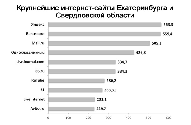 Источник: TNS Web Index, Екатеринбург, декабрь 2011 г. Данные по Е1, liveinternet.ru, декабрь 2011 г.