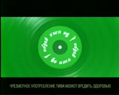 Крутится зеленая пластинка, приближ, торчат лампочки, между ними появл бут, поют"Овип локос мир меняется во имя добра...", зажигаются, среди футурист фигур повл бут, цветы, среди камней появл бут, взлетают, удал пластинка КНЦ обложка, бут