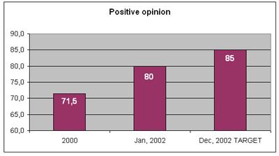 2) Повышение показателя положительного отношения с 71.5 % в 2000 году до 80