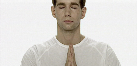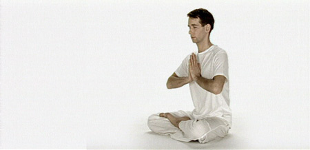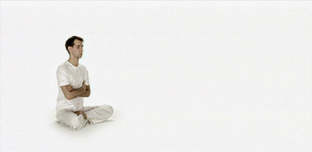 фоне были изображены вороны и йог в позе лотоса. Белый фон и минимальное количество