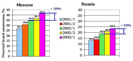 К июню 2003 года знание марки увеличилось на 20% по Москве и на 23% по России.