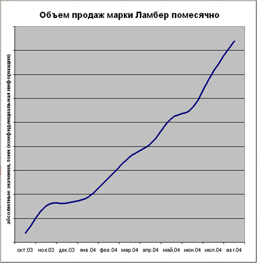 1. Объемы продаж Ламбер стремительно растут (см. прилагаемый график). В 2004 году планируется перевыполнение плана продаж.