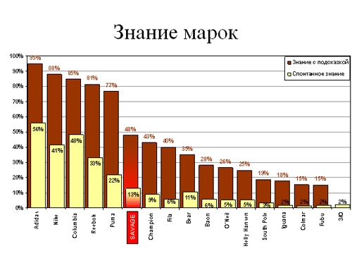 Среди потребителей марки SAVAGE спонтанное знание рекламы составило более 50%.