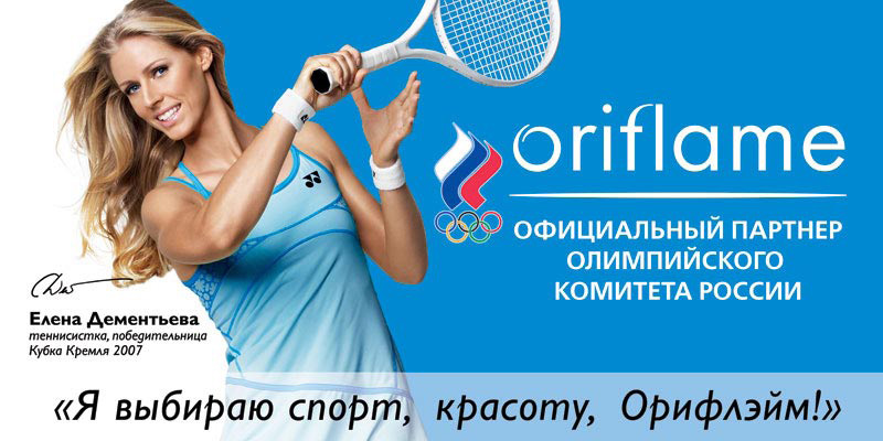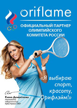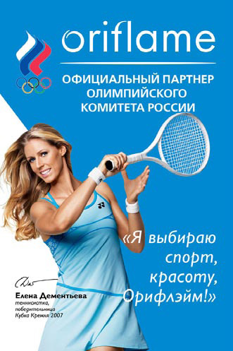 Целью рекламной кампании, в которой приняла участие знаменитая теннисистка Елена Дементьева, стала коммуникация идеи всей олимпийской кампании - связь спорта и здорового образа жизни через красоту с брендом Орифлэйм