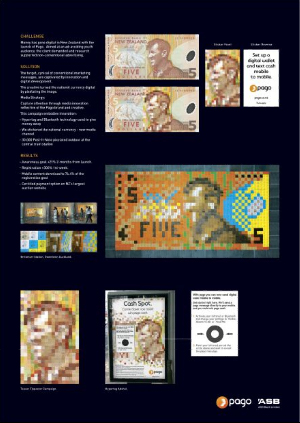 Pago is a financial innovation in New Zealand where, from a virtual wallet linked to an everyday bank account, users can text each other money, from one mobile phone to another. It was a dream brief - the client demanded and (research supported) non-conventional advertising. Key insight: The prospect target was defined as 'Digital Natives' - a tech savvy youth audience. Although highly cynical of conventional marketing messages they are captivated by innovation and digital development. Strategy: Capture attention through new technology and media innovation reflective of the Pago brand. The media solution discovers new touch points and embodies genuine media innovation.