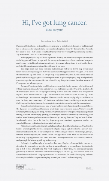 Advertiser/Client: SINGAPORE HOSPICE COUNCIL