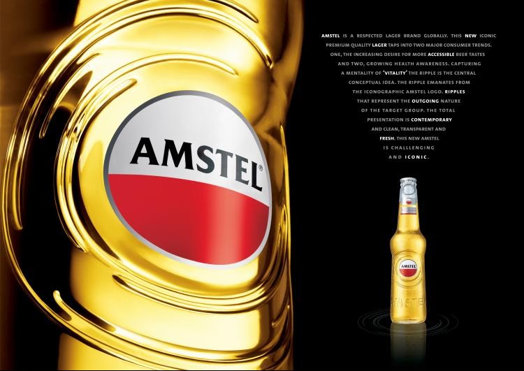 Amstel is a respected lager brand globally. This new iconic Premium Quality Lager taps into two major consumer trends. One: the increasing desire for more accessible beer tastes and two: growing health awareness. The desire was to create a pack that felt different to standard beers; something contemporary, something new, nothing less than an icon.