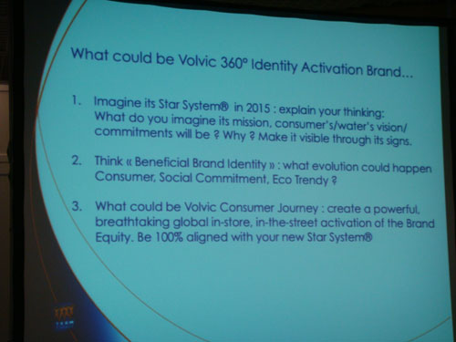 По окончании презентации аудитория была поделена на несколько групп, каждой из которых было предложено сделать свое предложение по тому, как может измениться бренд Volvic в 2015 году, учитывая новые тренды и потребности.