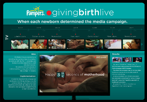 Advertiser : PROCTER & GAMBLE Product : PAMPERS Entrant : DEL CAMPO SAATCHI & SAATCHI Buenos Aires, ARGENTINA Type of Entry : Use of Promo & Activation Category : Best Use of Broadcast in a Promotional Campaign Title : GIVING BIRTH LIVE Advertiser/Client : PROCTER & GAMBLE Product/Service : PAMPERS Entrant Company : DEL CAMPO SAATCHI & SAATCHI Buenos Aires, ARGENTINA Advertising Agency : DEL CAMPO SAATCHI & SAATCHI Buenos Aires, ARGENTINA