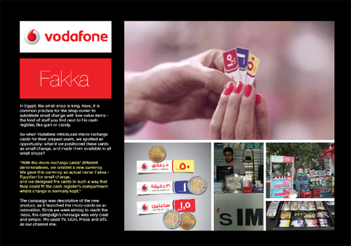 Advertiser : VODAFONE EGYPT Product : MICRO RECHARGE CARDS Entrant : JWT CAIRO, EGYPT Type of Entry : Use of Promo & Activation Category : Best Use of Shopper Marketing in a Promotional Campaign Title : VODAFONE FAKKA Advertiser/Client : VODAFONE EGYPT Product/Service : MICRO RECHARGE CARDS Entrant Company : JWT CAIRO, EGYPT Advertising Agency : JWT CAIRO, EGYPT