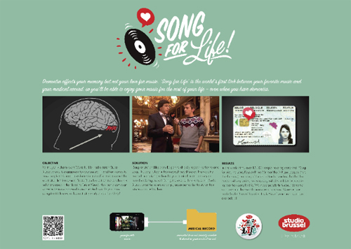 Advertiser : STUDIO BRUSSELS Product : MUSIC FOR LIFE Entrant : MORTIERBRIGADE Brussels, BELGIUM Type of Entry : Use of Promo & Activation Category : Best Use of Other Digital Media in a Promotional Campaign Title : SONG FOR LIFE Advertiser/Client : STUDIO BRUSSELS Product/Service : MUSIC FOR LIFE Entrant Company : MORTIERBRIGADE Brussels, BELGIUM Advertising Agency : MORTIERBRIGADE Brussels, BELGIUM