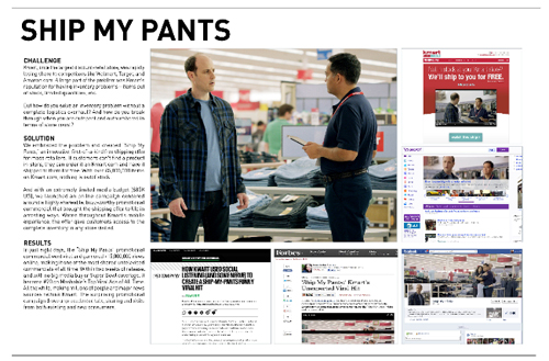Advertiser : KMART Product : STORE TO HOME Entrant : DRAFTFCB Chicago, USA Type of Entry : Use of Promo & Activation Category : Best use of Social Media Marketing in a Promotional Campaign Title : SHIP MY PANTS Advertiser/Client : KMART Product/Service : STORE TO HOME Entrant Company : DRAFTFCB Chicago, USA Advertising Agency : DRAFTFCB Chicago, USA
