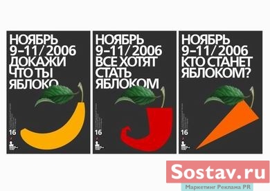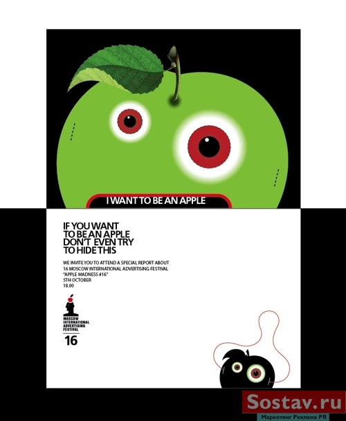 «Честно? Картинки понравились. Слова – нет. Неубедительно. Ну не хочу я быть яблоком! Я хочу быть Ньютоном. Или Адамом. Или Парисом. Или Мичуриным. Или, на худой конец, садовником. Очень хочу быть Буниным с его «Антоновскими яблоками». А яблоком или овощем – не тянет. Нет, я прекрасно понимаю смысл, который вложен в этот message, но сформулировано коряво. Ломает доказывать, что я – яблоко…» – не моргнув глазом, сказал я, понимая, что на этом интервью можно заканчивать.
