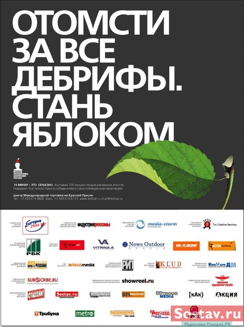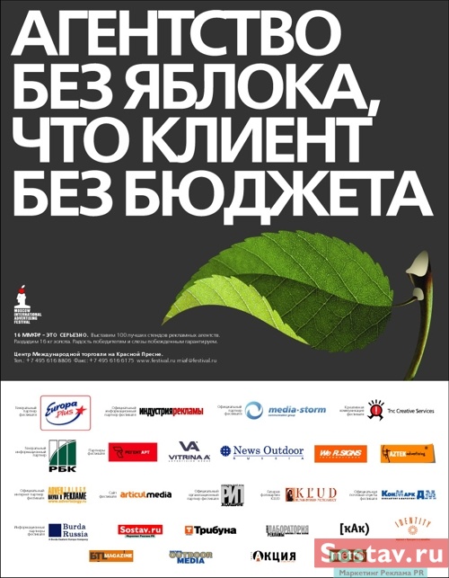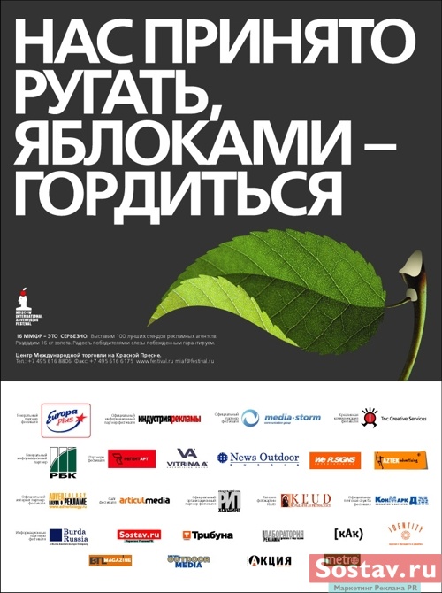 Не успел перевести дух после «Золотого барабана», на горизонте – новый рекламный фестиваль, Московский международный. «А тебе-то что? –удивится регулярный потребитель моих «пятниц», «салатов», «лиг чемпионов», «рек-таймов» и «карт-бланшей». – Ты же с ними в вечных контрах! И даже обещал, что ноги твоей в ЦМТ больше не будет, мол, не станешь впредь поддерживать эту богадельню авторитетом своего известного в узких кругах имени».