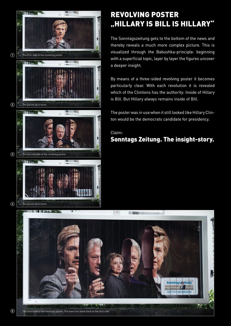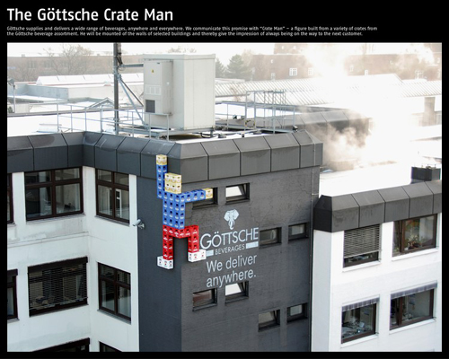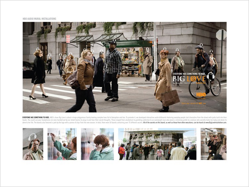 Bigger Storage Ideas IKEA Germany Ogilvy & Mather Frankfurt, Frankfurt/Main Home Furnishings/Appliances HBO Audio Mural Installations Advertising Agency: BBDO New York, New York Creative Director: James Clunie, Pierre Lipton Art Director: James Clunie Copywriter: Pierre Lipton Photographer: Brad Harris Other: Senior Creative Director: Mike Smith ; Art Producer: Betsy Jablow; Audio Producer: Peter Feldman Hillary SonntagsZeitung Advertising Agency: Advico Y&R AG, Zurich Creative Director: Christian Bobst The Missing Piece (Campaign) Ravensburger Puzzle Advertising Agency: Scholz & Friends, Berlin Creative Director: Matthias Spaetgens, Oliver Handlos Art Director: Jens-Petter Waernes, Erik Dagnell Account Executive: Laura Auerswald, Sven Weiche Photographer: Torsten Roman The Goettsche Man Of Beverage Crates Goettsche Beverages Advertising Agency: Scholz & Friends, Hamburg Creative Director: Timm Weber Art Director: Sebastian Kaufmann, Joerg Sachtleben, Marcus Kubicke Account Executive: Frank-Michael Trau, Bettina Zomorrodi Copywriter: Mathias Brueckner, Jens Agotz, Andreas Hilbig We Sell Guns Stop Handgun Violence Advertising Agency: Modernista!, Boston Art Director: Lahn Nguyen Designer: Michael Langone Copywriter: Madhu Kalyanaraman