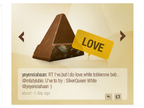 Product TOBLERONE Entrant MEMAC OGILVY & MATHER Dubai, UNITED ARAB EMIRATES Type of Entry: Interactive: Online Advertising Category: Online Advertising Advertiser/Client: KRAFT FOODS Product/Service: TOBLERONE Entrant Company: MEMAC OGILVY & MATHER Dubai, UNITED ARAB EMIRATES Advertising/Web Design Agency: MEMAC OGILVY & MATHER Dubai, UNITED ARAB EMIRATES Creative Credits Name Company Position Till Hohmann Memac Ogilvy & Mather Dubai Executive Creative Director Preethi Mariappan Ogilvy One Creative Director Marcus Silva Ogilvy One Interactive Art Director Melanie Clancy Ogilvy One Copywriter Sarabjeet Singh Ogilvy One Flash Developer Karen Kassouf Memac Ogilvy & Mather Dubai Account Manager Firat Aktas Memac Ogilvy & Mather Dubai Account Director Ramzi Moutran Memac Ogilvy & Mather Dubai Creative Director Wael Kaskas Kraft Foods Manager Category Marketing Snacks/Coffee/Desserts/GCC Dinars Studio 3D Illustration SPREAD THE WORD