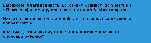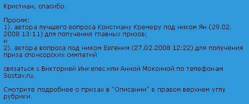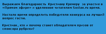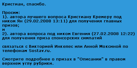 29.02.2008 15:06 Кристиан Кремер | Дорогие друзья, большое спасибо за ваши вопросы.
