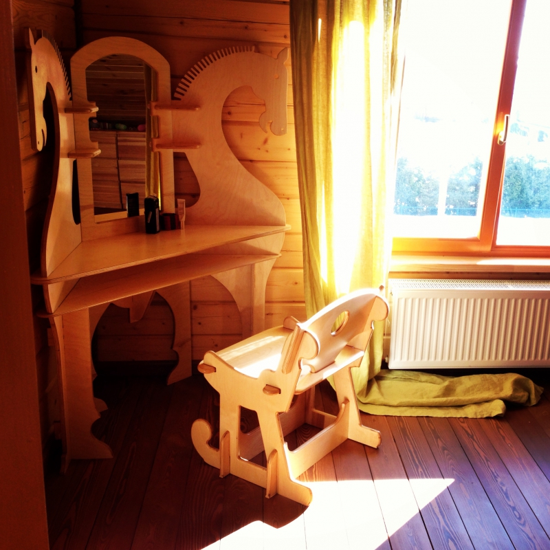А еще Фейгин открыл в себе талант мастера по дереву, вернее фанере, оставшись на месяц в одиночестве. Первая работа – конструктор-лошадка для дочери. Всем понравилось. На Новый Год Фейгин попросил подарить ему все возможные станки для работы с фанерой и обустройства мастерской на даче. Все новогодние премии были потрачены на это. Фейгин помнит и благодарит простого русского парня Емельяна из Калужской области, который ездил к Фейгину за 300 км и обучал его работе с деревом. Все пальцы на месте, увлечение производством дизайнерской мебели не угасло, поэтому если кому вдруг нужна полочка или стул, welcome.
