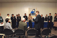В день, накануне конференции, ответственный пресс-менеджер проводит общее собрание со всеми участниками конференции со стороны организаторов. На собрании проговариваются сценарий пресс-конференции, дресс-код, распределяются обязанности каждого сотрудника, работающего на мероприятии, и время прихода на место проведения конференции.