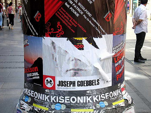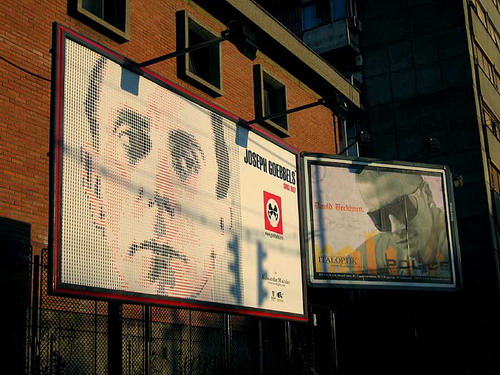 Так или иначе, огромная физиономия Геббельса на улицах Белграда вызвала противоречивые эмоции среди населения. Люди не всегда присматривались, из чего там слеплены знакомые до боли черты, зато замечали логотип из четырех скрещенных громкоговорителей и название торговой марки - "Йозеф Геббельс". Отчего часть кампании оказалась попорчена: