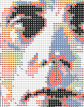 "Поскольку современное искусство имеет небольшое воздействие на широкую аудиторию, - жалуется автор, я решил задействовать ту же графическую коммуникацию в СМИ, чтобы донести свои мысли о таких вот неприятных аналогиях".
