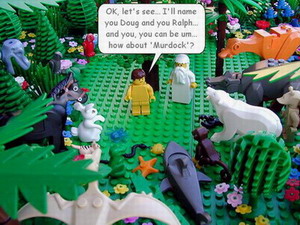 Преподобный Брендан Пауэлл Смит (вовсе не священник, а даже напротив - атеист из Калифорнии) иллюстрирует с помощью конструктора "Лего" библейские истории своего "Кирпичного завета": Лего-Бог создал Лего-человека, Лего-младенец-Иисус путешествует в Лего-Вифлеем на Лего-осле, Царь Лего-Ирод вырезает невиновных Лего. Так, например, выглядит лего-версия создания Мира и Человека из хаоса и небытия: