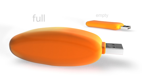 Русский дизайнер Дмитрий Комиссаров придумал устройство, которое должно раздуваться по мере насыщения информацией, чтобы невооруженным глазом видеть ёмкость свободной памяти (перед тем как взорваться, оно по идее, должно предупредить, о том, что места осталось совсем немного):