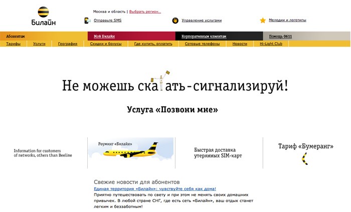 Ссылка (URL) :http://www.bbdo.ru/idea2008/banners/callme/ Описание команды: Творческий директор: Соловьев Павел, Дизайнер и аниматор: Владимир Данилов, Программист: Дмитрий Красников, Руководитель проекта: Шумаков Михаил.