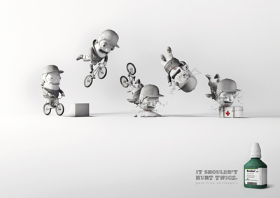 Creative idea explanation: Disinfecting wounds on kids can be an ordeal, as sometimes the cleaning and disinfecting process causes them as much pain as the accident itself. The idea portrays exactly that, in a series of actions how disinfecting can be equally painful as the accident. Betadine's formulation disinfects wounds without the burning sensation. This way the victim doesn’t have to experience pain twice.