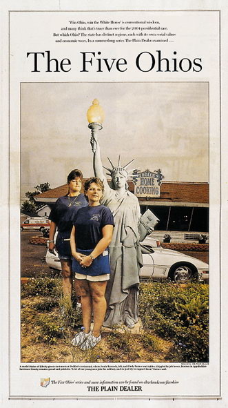 2-е место, категория: "Перепечатка", дизайнер: Лиза Гриффис, графический редактор: Кен Маршалл, редактор иллюстрации:Джефф Грин, графический художник: Вильям Нефф, фотографы: Джон Кунц, Майк Леви, Дейл Омори, Крис Стефеты, Лонни Тиммонс III, город: Кливленд, штат Огайо