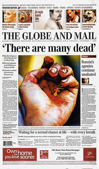2-е место, категория: "Выбор редактора, международные новости", дизайнер: Женевив Динел, артдиректор: Бенуа , фотограф: Боб Скиннер, город: Монреаль, Канада