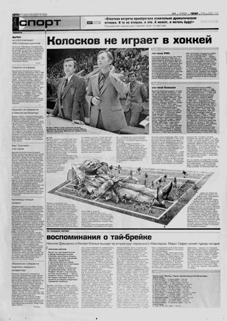Пояснения под группами работ - по сути рассказ о прошлом, настоящем и будущем мирового газетного дизайна Терри Уатсона (Terry Watson) - газетного дизайнера, консультанта, профессионала, который занимался редизайном газет во многих странах мира. Его комментарии к работе над редизайном "Советского спорта", можно прочесть в журнале [кАк) № 34 за 2005 год.