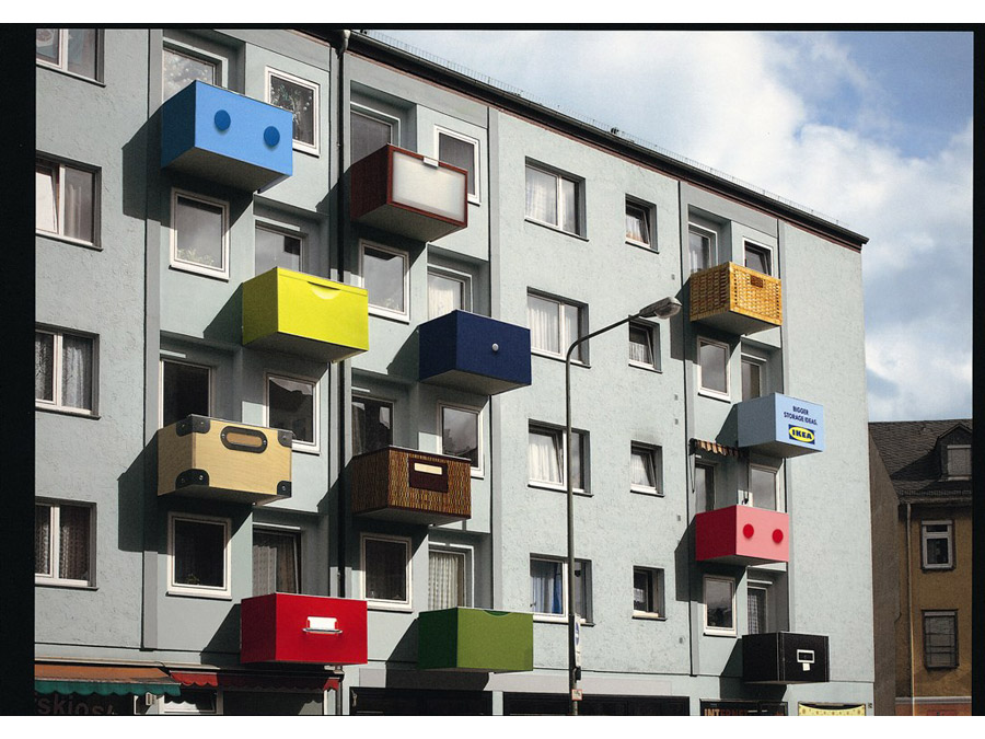 Basic description of the project: Germany’s flats and apartments are full of them: messy corners. That’s why the world-famous home furnishings chain store IKEA offers boxes and drawers in all shapes and sizes to meet each and every storage need. Aiming specifically at the large number of Frankfurt citizens that live in smaller apartments, the local IKEA store asked us to promote their storage solutions with a real big outdoor idea. In one of Frankfurt’s busiest streets, we disguised the balconies of an entire apartment house as giant versions of IKEA’s drawers and cardboard boxes.