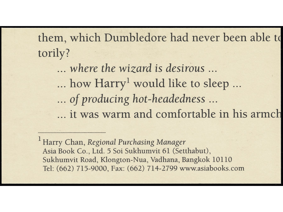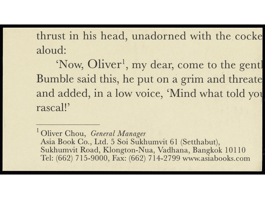 Instead of a typical business card, we design business cards using a foot-note for people to take notice of and to express briefly about the name. Each card shows the bottom part of the pages from many kinds of books, therefore one business card would represent one book.