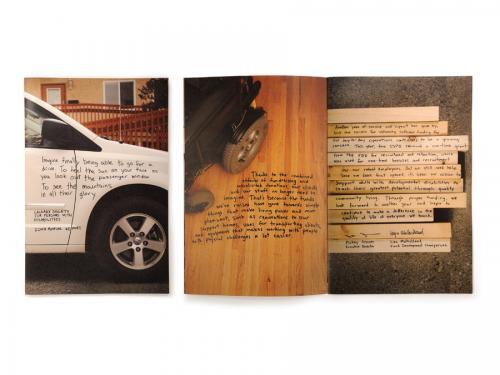 Credits Corporate Name of Client: Calgary Society for Person's with Disabilities Design Company: WAX, Calgary Creative Directors: Monique Gamache/Joe Hospodarec Copywriter: Saro Ghazarian Art Director: Jonathan Herman Photographer: Justen Lacoursiere Printer: Blanchette Press