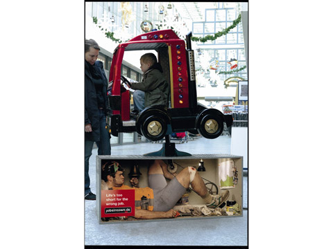 Credits Corporate Name of Client: jobsintown.de GmbH Agency: Scholz & Friends Berlin, Berlin Creative Directors: Matthias Spaetgens/Oliver Handlos Copywriters: Daniel Boedeker/Axel Tischer Art Directors: David Fischer/Tabea Rauscher Photographer: Hans Starck Graphic Artists: Ferdinand Ulrich/Julia Hauch Agency Producer: Soeren Gessat Account Managers: Katrin Voss/Sascha Kruse, Styling Petra Hoefer/CISEL