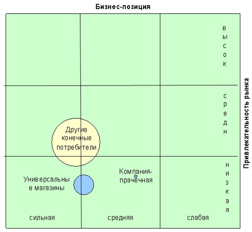 - Репозиционирование продукции с точки зрения наибольшей ее привлекательности для крупных и динамично развивающихся сегментов: универсальные магазины, конечные потребители.