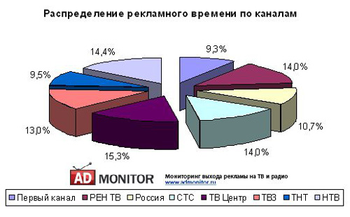 Напомним, в сентябре в эфире вышло 622 новых ролика, в октябре - 711, а в ноябре только 516. В первые три недели декабря вышло всего 442 новых ротации, и за последнюю предпраздничную неделю уже ничего не изменится. В декабре в телеэфире будет висеть рекламная картинка в стиле "ретро", то есть только хорошо знакомые потребителю ролики. Всплеск новых ротаций наблюдался в первую неделю декабря (188 новых роликов): рекламодатели запускали предновогодние кампании. В последующие предпраздничные недели новых роликов вышло гораздо меньше - 128 и 126. Общий объем рекламы на 8 телеканалах составил 27, 66 тысяч минут, из них на канал ТВ-Центр приходилось 4,22 тысяч минут, НТВ - 3,98 тысяч минут, РЕН ТВ и СТС по 3,86 тысяч минут, ТВ-3 - 3,59 тысяч минут, Россия - 2,97 тысяч минут, ТНТ - 2,62 тысяч минут, Первый канал - 2,56 тысяч минут.