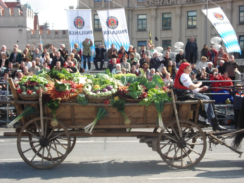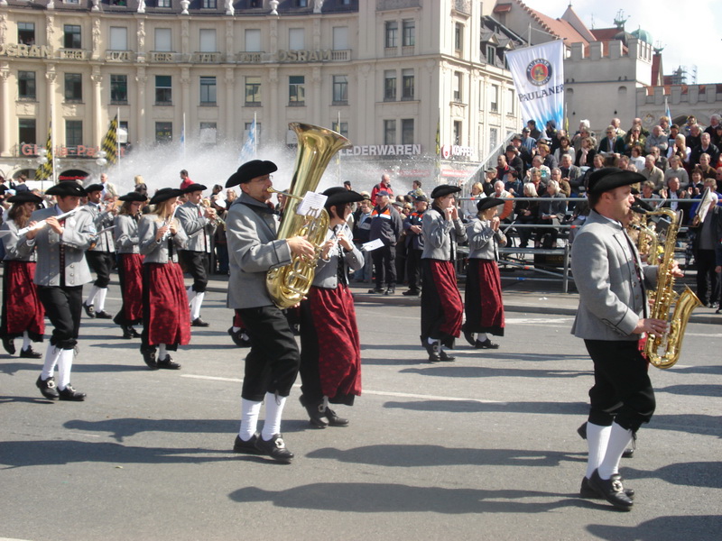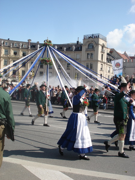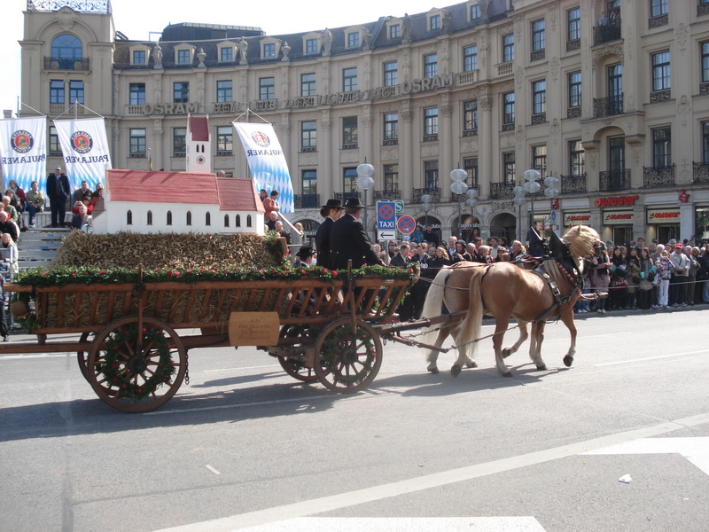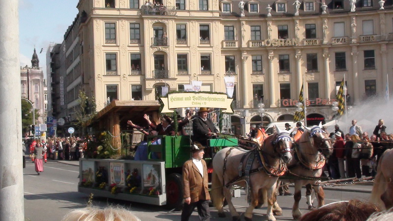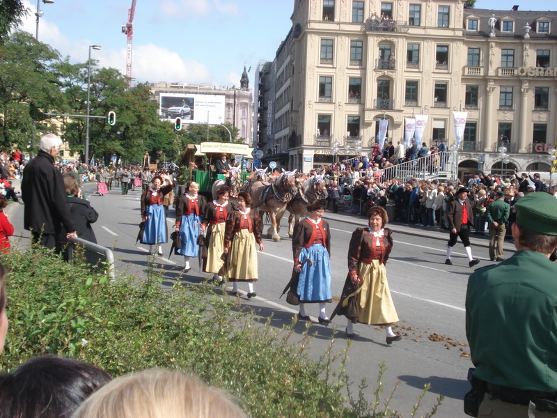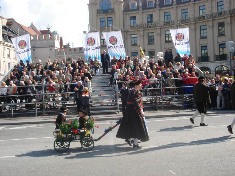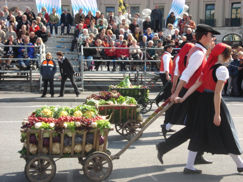 Парад и атмосфера парка Октоберфеста - TheresienwiesnЕще накануне праздника прошла информация, что на рейсах Lufthansa стюардессы и стюарды будут одеты в национальные баварские одежды. Соответственно, мужчины в клетчатых рубашках и укороченных штанах, женщины - в блузках с открытыми плечами и характерных белых передничках. В общем, атмосферу постарались создать еще на подлете.Однако, по прибытии в аэропорт нельзя сказать, что окунаешься в атмосферу праздника. Рекламы нет. Промоперсонала тоже нет. Только на выходе из таможенного коридора стоят промо, раздающие буклеты Deutsсhe Bahn, и призывают пользоваться их поездами вместо автобусов и такси. Правда, купить билет не так уж просто, если заранее не знать, где и как. Билеты продают кассиры, тоже одетые в баварском духе. В метро множество туристов, которые с придыханием говорят об Октоберфест, народ в национальных одеждах, причем баварцы явно не все: есть итальянцы, французы, латиноамериканцы. Русская речь тоже слышна довольно часто. На улицах плакатов с темой Октоберфест нет. Увы. При подъезде к Центральной станции попадаешь на парад. Программа Октоберфест не изобилует специальными мероприятиями, точнее, их всего два: торжественное открытие и парад. На улицах города организовано костюмированное шествие, чем-то похожее на шествие олимпийских команд. Здесь можно увидеть представителей разных пивоварен, городков и групп энтузиастов, которые стараются превзойти друг друга в красочности и необычности нарядов. Мимо идут ансамбли трубачей и барабанщиков, тоже в национальных одеждах, катятся повозки, запряженные лошадьми, разукрашенными коваными узорами, бубенцами, перьями и расшитыми попонами. На повозках громоздятся живописные композиции из овощей и фруктов, колбас и окороков. В параде участвуют и маленькие дети, которым доверено нести гербы команд, и катить маленькие тачки с овощами и колбасами. Команд так много, что легко можно сбиться со счета: десятки? сотни? Шествие продолжается много часов. По краям улицы стоят трибуны, билеты на которые можно свободно купить примерно за 25-35 евро. В этом случае ты с комфортом смотришь на все представление. Октоберфест проходит на особой территории, которая называется Theresienwiesn (Терезьенвизен). Это что-то вроде парка в центральной части города, вход - бесплатный. Найти это место довольно легко - нужно идти за толпами туристов и местных граждан в национальных одеждах. Все тянутся в одну сторону, и ошибиться невозможно. Именно здесь вы окунаетесь в волшебную атмосферу праздника, и понимаете прелесть Октоберфест. Весь парк - сплошное колыхающееся море людей, снующих кто куда. Люди улыбаются друг другу, румяные женщины в декольтированных блузках, корсетах и пышных юбках раздают пиво - как в рекламе - и просто веселятся, мельтешат дети, над парком стоит невероятный шум и веселые крики. Веселье в самом разгаре. Бросается в глаза одна особенность местного населения: много мужчин высокого роста - выше 1,8 м. Основное развлечение на фестивале - это, конечно, пиво, а также всевозможные аттракционы, карусели, торговля праздничными сувенирами, сладостями. Семь крупнейших пивоварен расположили свои огромные павильоны в парке Theresienwiesn. К большим павильонам стараются примкнуть павильончики поменьше. Во всех идет бойкая торговля. Рядом огромный луна-парк, "русские" горки, комнаты 