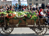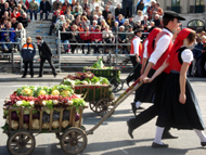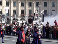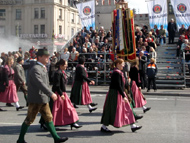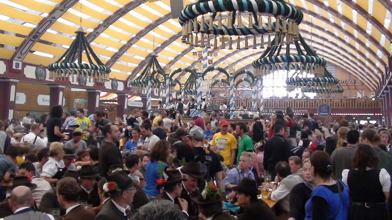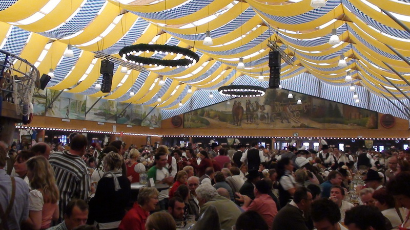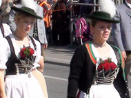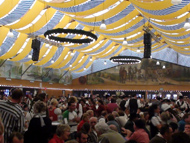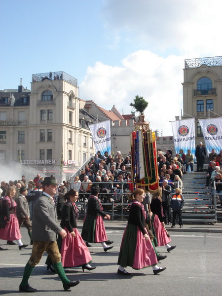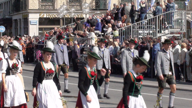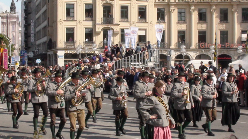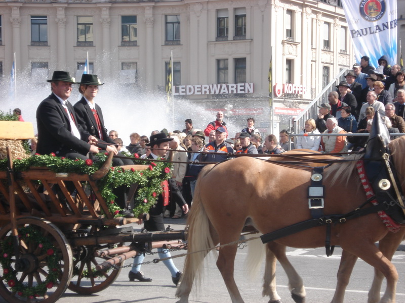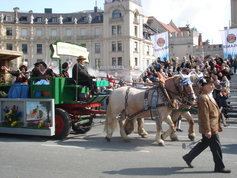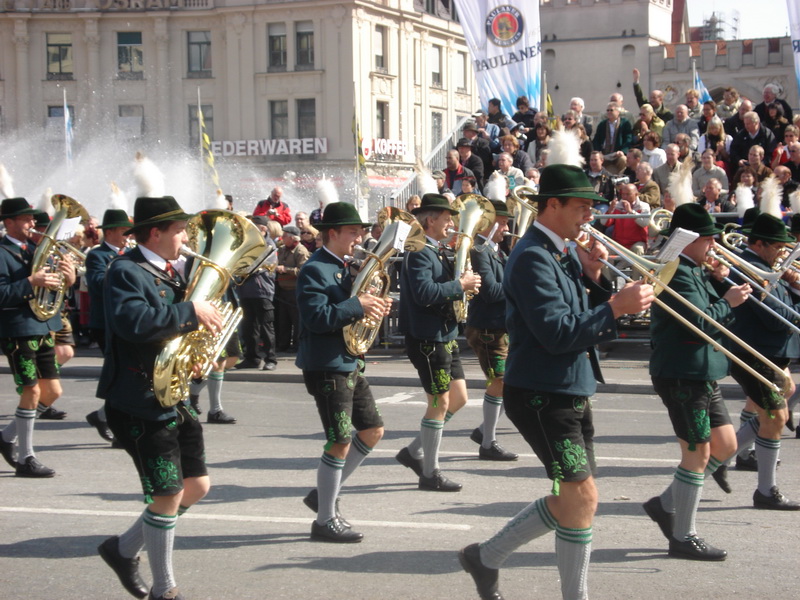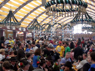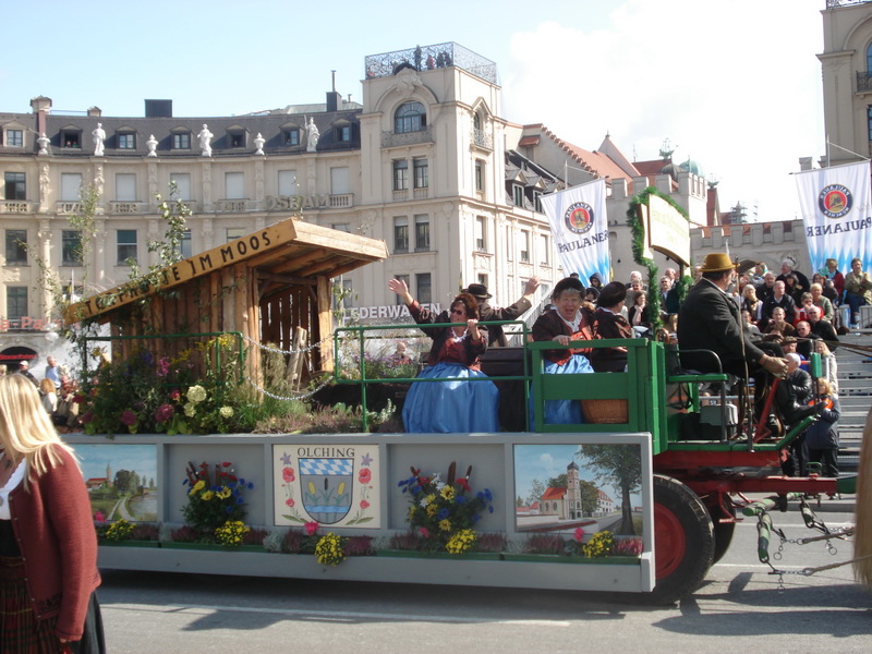 Парад и атмосфера парка Октоберфеста - TheresienwiesnЕще накануне праздника прошла информация, что на рейсах Lufthansa стюардессы и стюарды будут одеты в национальные баварские одежды. Соответственно, мужчины в клетчатых рубашках и укороченных штанах, женщины - в блузках с открытыми плечами и характерных белых передничках. В общем, атмосферу постарались создать еще на подлете.Однако, по прибытии в аэропорт нельзя сказать, что окунаешься в атмосферу праздника. Рекламы нет. Промоперсонала тоже нет. Только на выходе из таможенного коридора стоят промо, раздающие буклеты Deutsсhe Bahn, и призывают пользоваться их поездами вместо автобусов и такси. Правда, купить билет не так уж просто, если заранее не знать, где и как. Билеты продают кассиры, тоже одетые в баварском духе. В метро множество туристов, которые с придыханием говорят об Октоберфест, народ в национальных одеждах, причем баварцы явно не все: есть итальянцы, французы, латиноамериканцы. Русская речь тоже слышна довольно часто. На улицах плакатов с темой Октоберфест нет. Увы. При подъезде к Центральной станции попадаешь на парад. Программа Октоберфест не изобилует специальными мероприятиями, точнее, их всего два: торжественное открытие и парад. На улицах города организовано костюмированное шествие, чем-то похожее на шествие олимпийских команд. Здесь можно увидеть представителей разных пивоварен, городков и групп энтузиастов, которые стараются превзойти друг друга в красочности и необычности нарядов. Мимо идут ансамбли трубачей и барабанщиков, тоже в национальных одеждах, катятся повозки, запряженные лошадьми, разукрашенными коваными узорами, бубенцами, перьями и расшитыми попонами. На повозках громоздятся живописные композиции из овощей и фруктов, колбас и окороков. В параде участвуют и маленькие дети, которым доверено нести гербы команд, и катить маленькие тачки с овощами и колбасами. Команд так много, что легко можно сбиться со счета: десятки? сотни? Шествие продолжается много часов. По краям улицы стоят трибуны, билеты на которые можно свободно купить примерно за 25-35 евро. В этом случае ты с комфортом смотришь на все представление. Октоберфест проходит на особой территории, которая называется Theresienwiesn (Терезьенвизен). Это что-то вроде парка в центральной части города, вход - бесплатный. Найти это место довольно легко - нужно идти за толпами туристов и местных граждан в национальных одеждах. Все тянутся в одну сторону, и ошибиться невозможно. Именно здесь вы окунаетесь в волшебную атмосферу праздника, и понимаете прелесть Октоберфест. Весь парк - сплошное колыхающееся море людей, снующих кто куда. Люди улыбаются друг другу, румяные женщины в декольтированных блузках, корсетах и пышных юбках раздают пиво - как в рекламе - и просто веселятся, мельтешат дети, над парком стоит невероятный шум и веселые крики. Веселье в самом разгаре. Бросается в глаза одна особенность местного населения: много мужчин высокого роста - выше 1,8 м. Основное развлечение на фестивале - это, конечно, пиво, а также всевозможные аттракционы, карусели, торговля праздничными сувенирами, сладостями. Семь крупнейших пивоварен расположили свои огромные павильоны в парке Theresienwiesn. К большим павильонам стараются примкнуть павильончики поменьше. Во всех идет бойкая торговля. Рядом огромный луна-парк, "русские" горки, комнаты 
