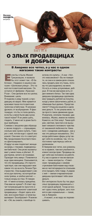 текст, две или три полосы - репортаж, иллюстрирующий тему, полоса или две - интервью.