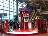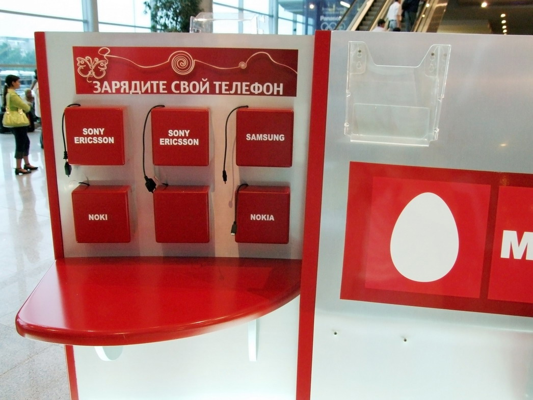 Москва - Домодедово Вот мы и отправились. На Павелецком вокзале явных следов Олимпиады мы не видели, но стали попадаться люди с олимпийской символикой - на куртках и сумках. Так что, ура, мы не одни. Мы приехали часа за два до вылета, так что у нас было время немного побродить по Домодедово. Тут олимпийская тема уже появилась. В центре зала стоит стенд МТС, на котором есть возможность зарядить мобильный телефон (и, кстати, даже iPhone, который пока в России официально не продается). Круглый стенд венчает земной шар с плывущей надписью «Роуминг». МТС - спонсор нашей сборной. На втором этаже со дня на день откроется магазин с олимпийскими товарами Боско. Сейчас его витрины закрыты огромной (или огромным?) Чебурашкой. Panasonic добавил к своей уже привычной рекламе с Такеши Китано олимпийские кольца. И очень удачно подобрал цитату режиссера: «Даже доли секунды таят в себе неповторимый сюжет». Фраза, как видите, объединяет как режиссерскую, так и олимпийскую тематику. Привет копирайтерам Panasonic. Ждем не дождемся Пекина, где компаний, которые стараются связать свой образ с Играми, будет в сотни раз больше. Естественно, нас в первую очередь интересны нетрадиционные и неожиданные способы продвижения.